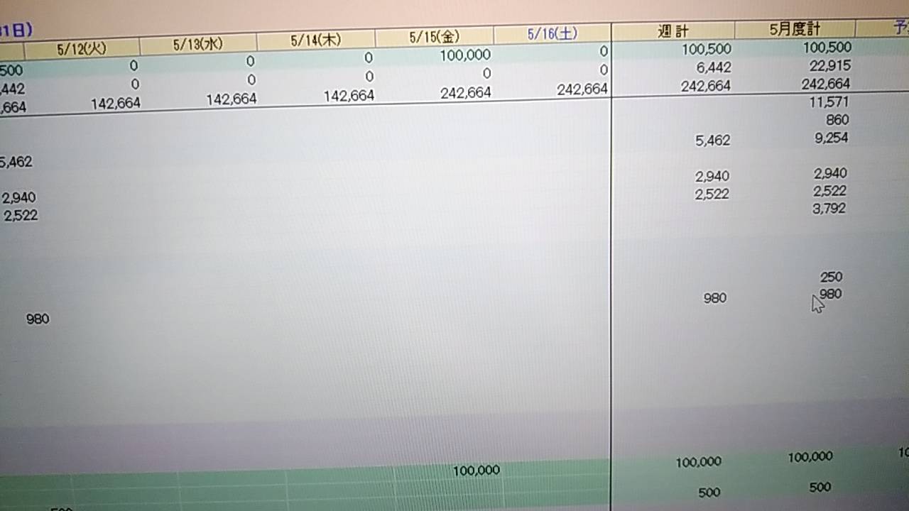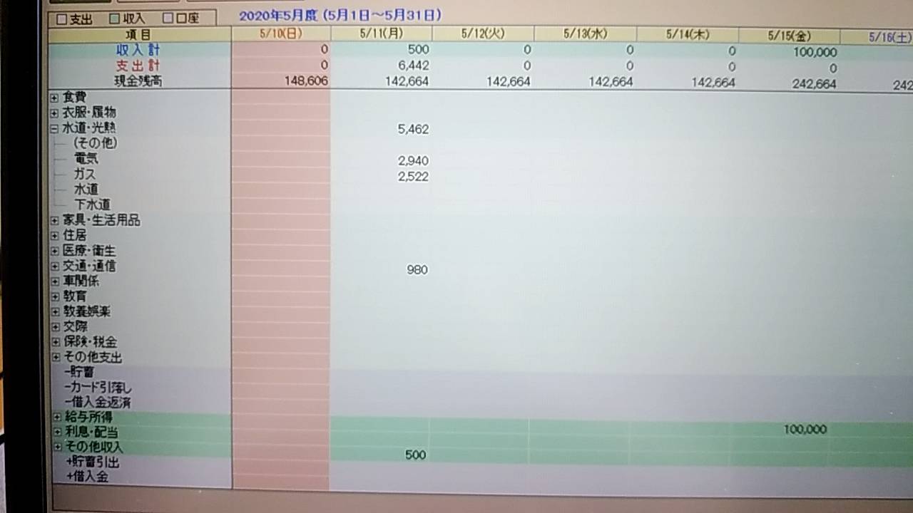 (見づらいですが5月11(火曜)だけ出費の画像です)